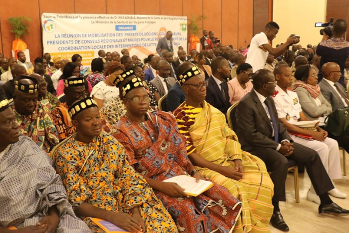 Sous la présidence et la présence effective de Dr AKA AOUELE EUGENE, Ministre de la Santé et l'Hygiène Publique, s'est tenu une importante réunion de mobilisation des préfets de région et les élus des collectivités territoriales, le 12 février 2020 à l’hôtel Président de Yamoussoukro, dans le cadre du renforcement de la coordination locale des interventions de lutte contre le Sida. |