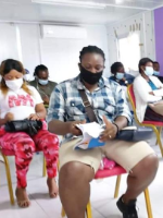 Atelier d'échanges sur les résultats du projet à mi-parcours avec les acteurs communautaires à l'hôpital général de Port Bouet |